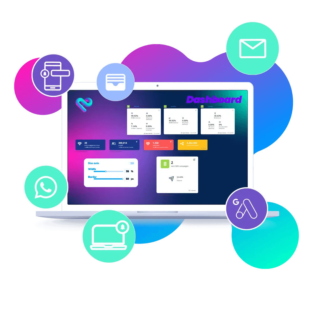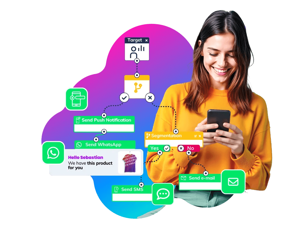 • Canaux natifs intégrés (email, SMS, push, web, réseaux sociaux)