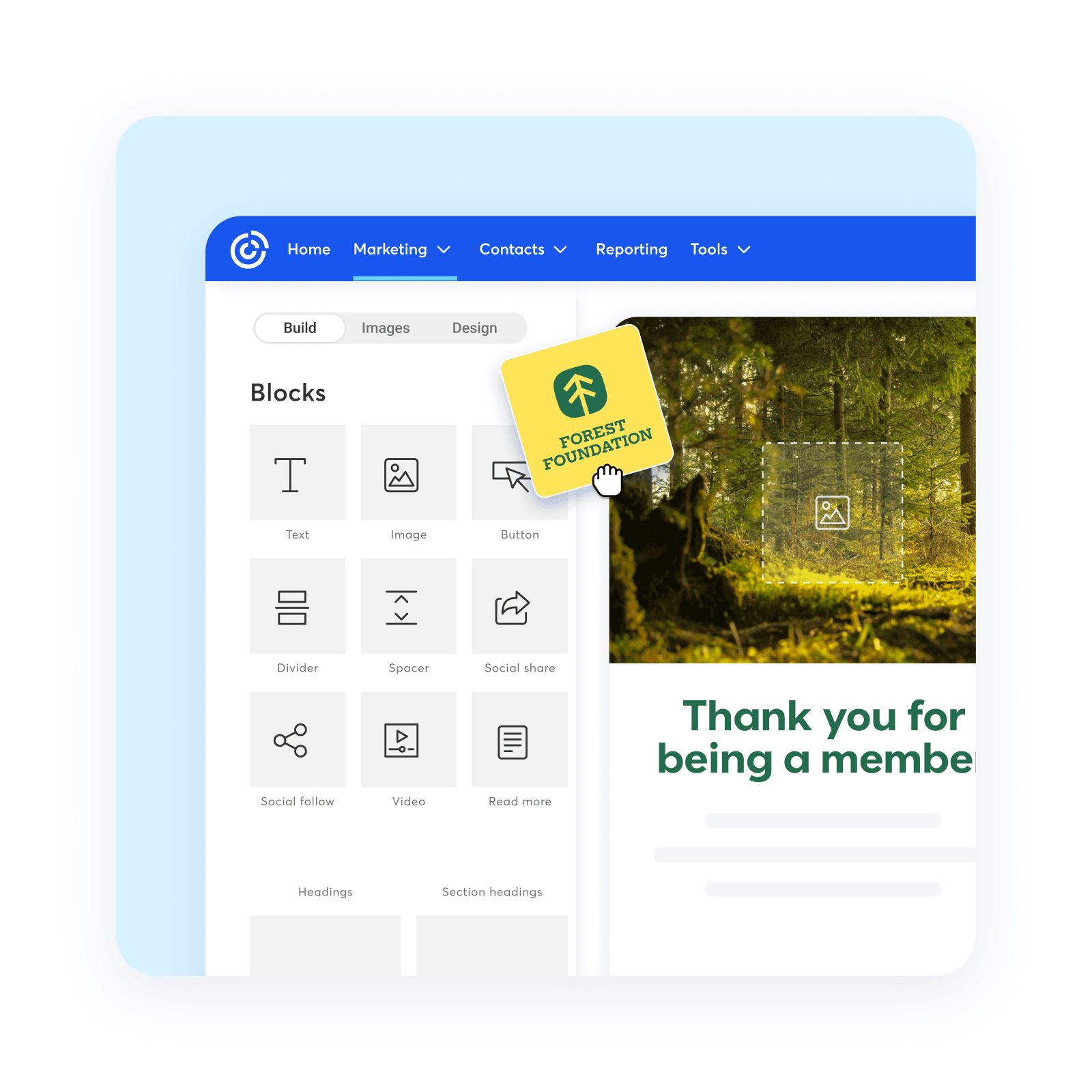• Éditeur email drag-and-drop avec IA