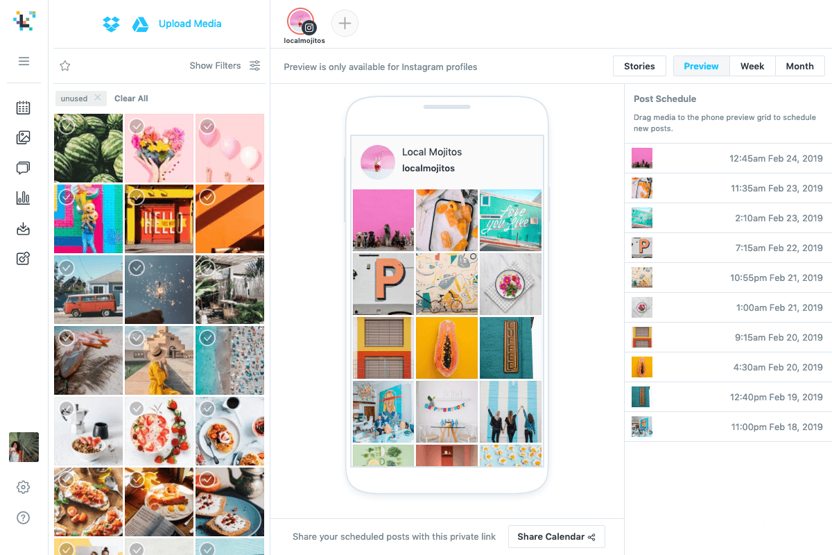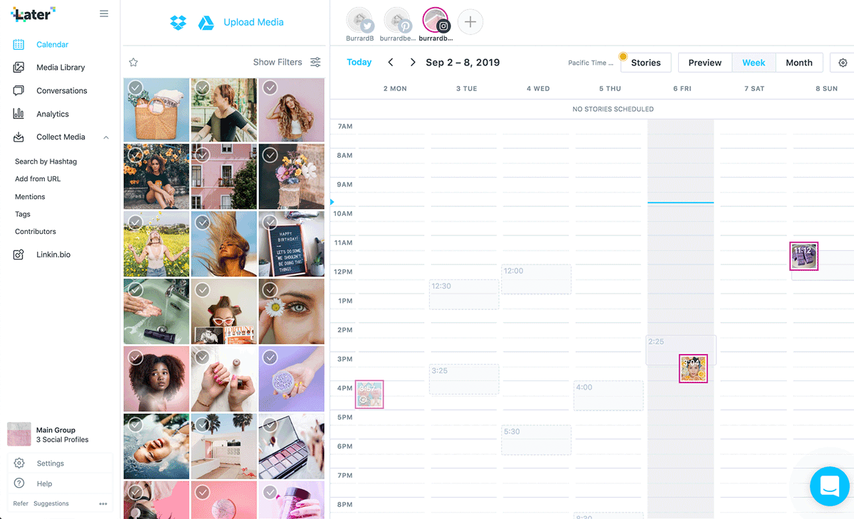 Later intègre un Ă©cosystème complet de fonctionnalitĂ©s conçues pour couvrir l’intĂ©gralitĂ© du cycle de vie du social media marketing, de la planification stratĂ©gique Ă l’analyse des performances. Le calendrier visuel constitue le cĹ“ur de l’expĂ©rience utilisateur, offrant une interface drag-and-drop intuitive qui permet de planifier et visualiser l’ensemble de sa stratĂ©gie de contenu sur une timeline unifiĂ©e, avec des vues par plateforme, par campagne ou par pĂ©riode personnalisable. Le système d’auto-publication fonctionne nativement sur Instagram Business et Creator, Facebook, TikTok Business, LinkedIn, Pinterest, YouTube, Threads et Snapchat, Ă©liminant les contraintes de publication manuelle et permettant une gestion vĂ©ritablement automatisĂ©e des campagnes. Les outils de crĂ©ation de contenu intègrent un Ă©diteur mĂ©dia avancĂ© avec fonctionnalitĂ©s de recadrage, filtres, ajout de texte et trim vidĂ©o, plus une intĂ©gration native avec Canva qui permet d’exporter directement les crĂ©ations vers la bibliothèque mĂ©dia. Le système Link in Bio rĂ©volutionnaire transforme le lien unique des profils en hub de conversion sophistiquĂ© avec boutons personnalisables, liens vers les posts, bannières promotionnelles, intĂ©gration e-commerce et tracking dĂ©taillĂ© des clics et conversions. Les analytics multi-plateformes fournissent des insights actionnables sur la croissance d’audience, l’engagement, les performances de contenu et les tendances, avec des rapports personnalisables et partageables qui facilitent la dĂ©monstration du ROI. La collaboration d’Ă©quipe s’articule autour de workflows d’approbation sophistiquĂ©s, de permissions granulaires par Access Group, de commentaires contextuels sur les posts et de calendriers partagĂ©s qui optimisent la coordination entre Ă©quipes. La Social Inbox centralise la gestion des interactions avec des fonctionnalitĂ©s de rĂ©ponse aux DMs Instagram et Facebook, commentaires TikTok et mentions, transformant la gestion communautaire en processus centralisĂ© et efficace. Le système de collecte de contenu UGC permet de rechercher, sauvegarder et republier du contenu par hashtags, mentions, tags ou profils, facilitant la curation et l’amplification du contenu gĂ©nĂ©rĂ© par les utilisateurs.