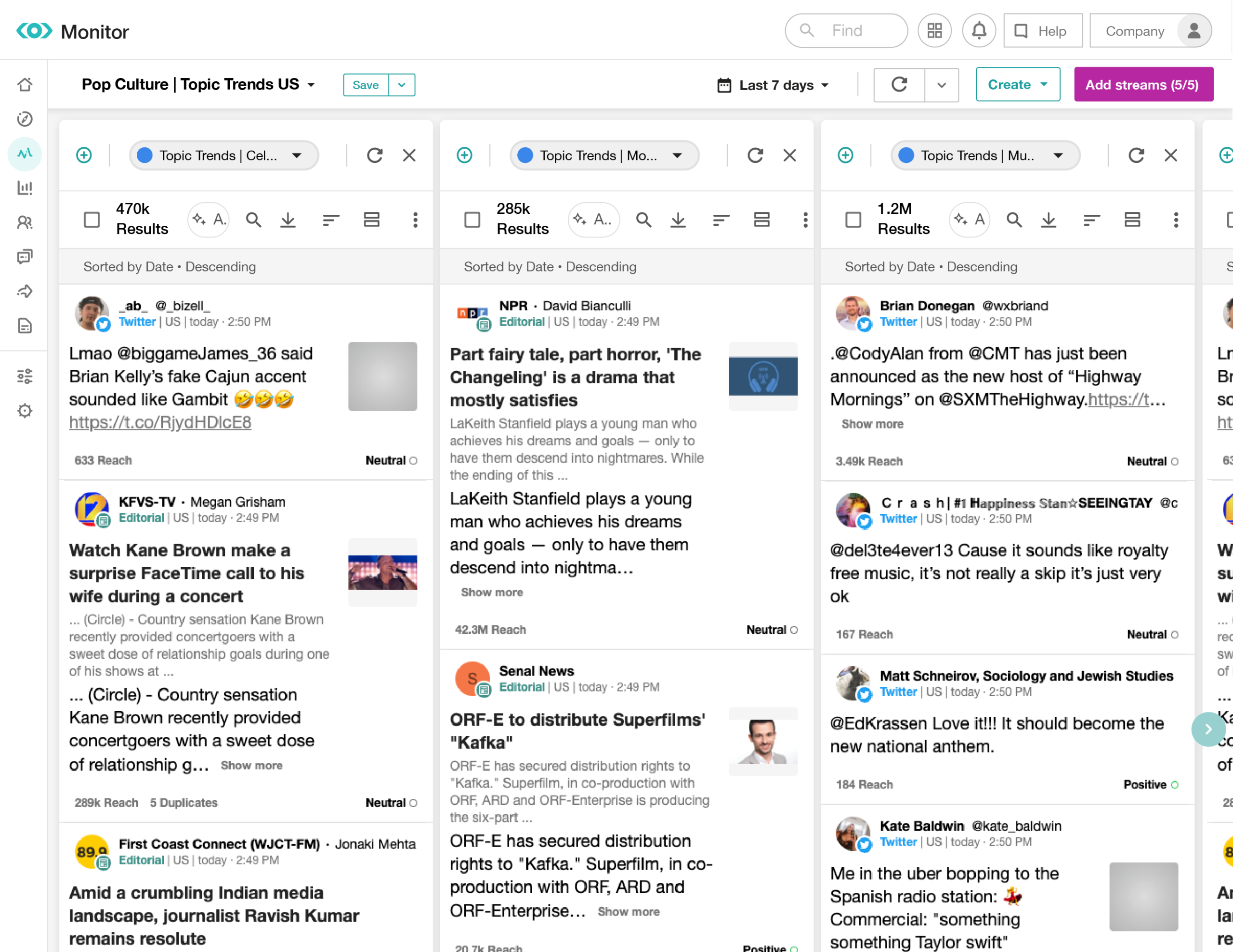 Meltwater dĂ©ploie un arsenal technologique impressionnant articulĂ© autour de huit piliers fonctionnels majeurs qui redĂ©finissent les standards de l’intelligence mĂ©dia. La surveillance mĂ©dia en temps rĂ©el constitue le socle de la plateforme, analysant continuellement des millions de sources mondiales incluant presse traditionnelle, mĂ©dias numĂ©riques, blogs, forums et rĂ©seaux sociaux. Cette veille exhaustive s’enrichit de l’intelligence artificielle Mira, assistant conversationnel rĂ©volutionnaire qui dĂ©mocratise l’accès aux insights complexes en Ă©liminant les barrières techniques traditionnelles. Les relations mĂ©dias bĂ©nĂ©ficient d’une base de donnĂ©es journalistique mondiale permettant d’identifier et de contacter les influenceurs clĂ©s de chaque secteur. L’Ă©coute sociale avancĂ©e dĂ©crypte les conversations numĂ©riques avec une analyse de sentiment sophistiquĂ©e et une dĂ©tection proactive des crises potentielles. La gestion des rĂ©seaux sociaux intègre planification, publication et mesure de performance dans une interface unifiĂ©e. L’intelligence consommateur rĂ©vèle les insights comportementaux et les tendances Ă©mergentes grâce Ă  l’analyse de donnĂ©es massives. Le marketing d’influence facilite l’identification, la collaboration et la mesure d’impact des partenariats avec les crĂ©ateurs de contenu. L’intelligence commerciale transforme les signaux faibles en opportunitĂ©s business concrètes. L’intĂ©gration API robuste connecte Meltwater aux Ă©cosystèmes technologiques existants, crĂ©ant des workflows automatisĂ©s et des tableaux de bord personnalisĂ©s pour chaque mĂ©tier et niveau hiĂ©rarchique.