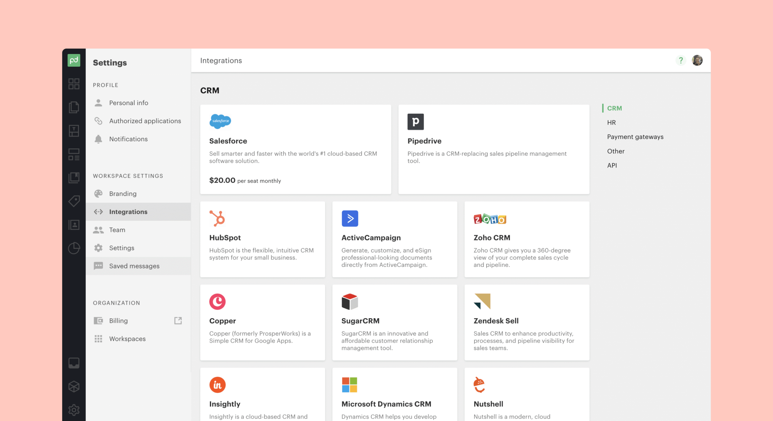 • IntĂ©grations CRM natives (Salesforce, HubSpot, Pipedrive)