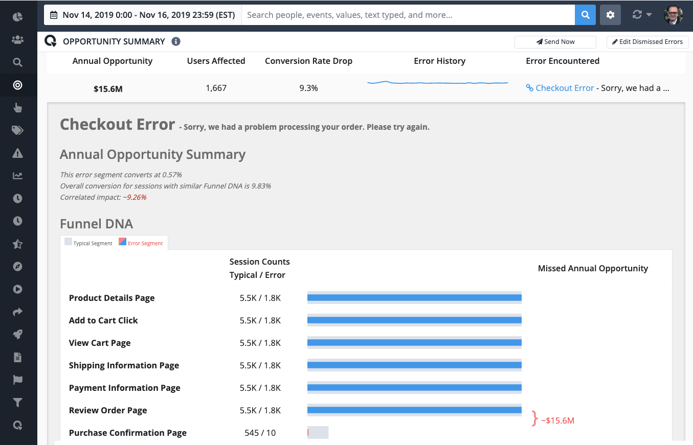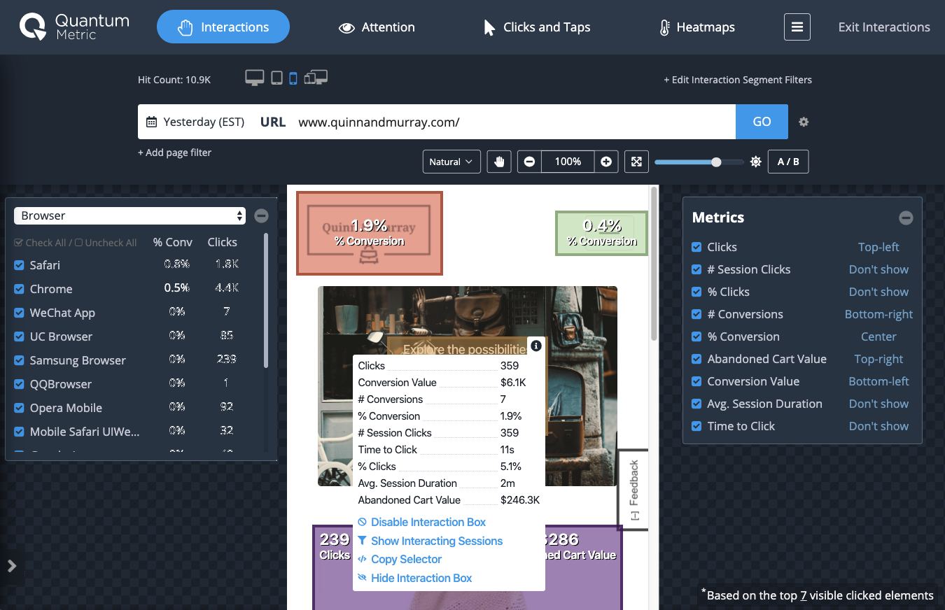 Quantum Metric propose un Ă©cosystème complet de fonctionnalitĂ©s avancĂ©es pour l’analyse et l’optimisation de l’expĂ©rience digitale. L’autocapture de donnĂ©es constitue le socle de la plateforme, collectant automatiquement plus de 300 mĂ©triques comportementales sans nĂ©cessiter de modifications de code, incluant clics, scrolls, erreurs JavaScript, temps de chargement et interactions utilisateur. Felix AI, l’agent intelligent propriĂ©taire, analyse en continu ces donnĂ©es pour identifier automatiquement les anomalies, tendances et opportunitĂ©s d’optimisation, gĂ©nĂ©rant des insights actionnables et des recommandations personnalisĂ©es. La session replay haute fidĂ©litĂ© permet de visualiser l’expĂ©rience exacte de chaque utilisateur, avec possibilitĂ© de filtrage avancĂ© par segments, erreurs ou comportements spĂ©cifiques. Les heatmaps dynamiques et cartes de clics rĂ©vèlent les zones d’interaction privilĂ©giĂ©es et les Ă©lĂ©ments ignorĂ©s, facilitant l’optimisation du design et de l’ergonomie. L’analyse de parcours client multi-canaux trace les journeys complexes Ă travers diffĂ©rents touchpoints, identifiant les points de friction et d’abandon. Le système d’alertes intelligentes notifie proactivement les Ă©quipes lors de dĂ©gradations de performance ou d’anomalies comportementales critiques. Les tableaux de bord personnalisables et templates par industrie accĂ©lèrent la mise en Ĺ“uvre et l’adoption. L’analyse d’opportunitĂ©s quantifie l’impact business potentiel de chaque optimisation, aidant Ă la priorisation des initiatives. Les intĂ©grations API natives avec plus de 50 outils tiers enrichissent l’Ă©cosystème technologique existant. Enfin, les capacitĂ©s d’export vers les data warehouses permettent d’intĂ©grer les insights Quantum Metric dans les analyses business globales de l’organisation.