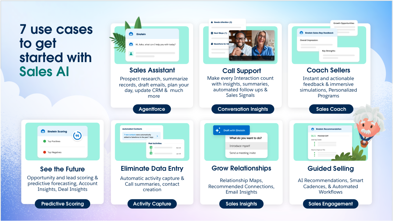 Salesforce Sales Cloud intègre un Ă©cosystème d’intelligence artificielle particulièrement avancĂ©, positionnĂ© Ă l’avant-garde de l’innovation technologique dans le domaine du CRM. Einstein, la plateforme IA native de Salesforce, exploite des algorithmes de machine learning sophistiquĂ©s pour analyser les patterns comportementaux des prospects et clients, gĂ©nĂ©rant des insights prĂ©dictifs d’une prĂ©cision remarquable. Cette technologie s’appuie sur l’analyse de milliards de points de donnĂ©es pour identifier les signaux d’achat faibles et recommander les meilleures actions commerciales. Agentforce reprĂ©sente la nouvelle gĂ©nĂ©ration d’agents IA autonomes, capables de mener des conversations naturelles avec les prospects, de qualifier les leads et mĂŞme de planifier des rendez-vous sans intervention humaine. Ces agents utilisent des modèles de langage avancĂ©s, notamment Einstein GPT et des intĂ©grations avec OpenAI, pour comprendre le contexte et fournir des rĂ©ponses pertinentes et personnalisĂ©es. L’Atlas Reasoning Engine constitue le cerveau de ces agents, dĂ©composant les requĂŞtes complexes en tâches Ă©lĂ©mentaires et orchestrant les actions appropriĂ©es. Les capacitĂ©s de traitement du langage naturel permettent aux utilisateurs d’interroger leurs donnĂ©es commerciales en français courant, dĂ©mocratisant l’accès aux insights analytiques. L’IA conversationnelle analyse automatiquement les appels commerciaux pour identifier les moments clĂ©s, les objections rĂ©currentes et suggĂ©rer des amĂ©liorations de performance. Cette intĂ©gration native de l’IA transforme fondamentalement l’expĂ©rience utilisateur, passant d’un outil passif de gestion de donnĂ©es Ă un assistant intelligent proactif.