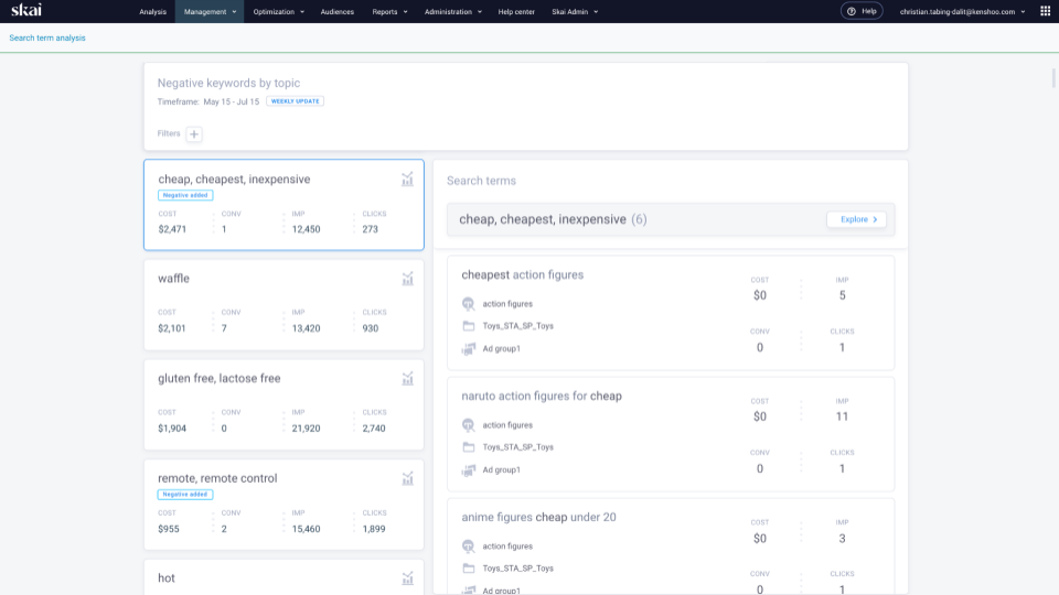 Skai, anciennement connu sous le nom de Kenshoo, est une plateforme SaaS omnicanale rĂ©volutionnaire qui transforme la façon dont les marques et agences gèrent leurs campagnes de commerce media. FondĂ©e en 2006, cette solution israĂ©lienne s’est imposĂ©e comme le leader mondial de la gestion publicitaire unifiĂ©e, servant plus de 8 200 marques et agences Ă  travers le monde. La plateforme centralise la gestion de plus de 100 Ă©diteurs et retailers, permettant aux marketeurs de piloter leurs campagnes search, social et retail media depuis une interface unique. L’innovation majeure de Skai rĂ©side dans son agent IA Celeste, qui rĂ©volutionne l’optimisation publicitaire en fournissant des insights instantanĂ©s, des recommandations intelligentes et une automatisation avancĂ©e. Avec plus de 9 milliards de dollars de dĂ©penses publicitaires gĂ©rĂ©es annuellement et 800 000 campagnes actives, Skai dĂ©montre sa capacitĂ© Ă  gĂ©rer des programmes marketing complexes Ă  grande Ă©chelle. La plateforme excelle particulièrement dans l’unification des donnĂ©es disparates, transformant les silos d’information en insights actionnables qui guident les dĂ©cisions stratĂ©giques. Les cas d’usage incluent l’optimisation des campagnes Amazon, la gestion des publicitĂ©s Facebook et Google, l’automatisation des enchères, et la mesure de l’incrĂ©mentalitĂ©. Des success stories comme Dr. Squatch (+80% de ROAS) et PepsiCo tĂ©moignent de l’efficacitĂ© de la solution pour gĂ©nĂ©rer une croissance mesurable et durable.