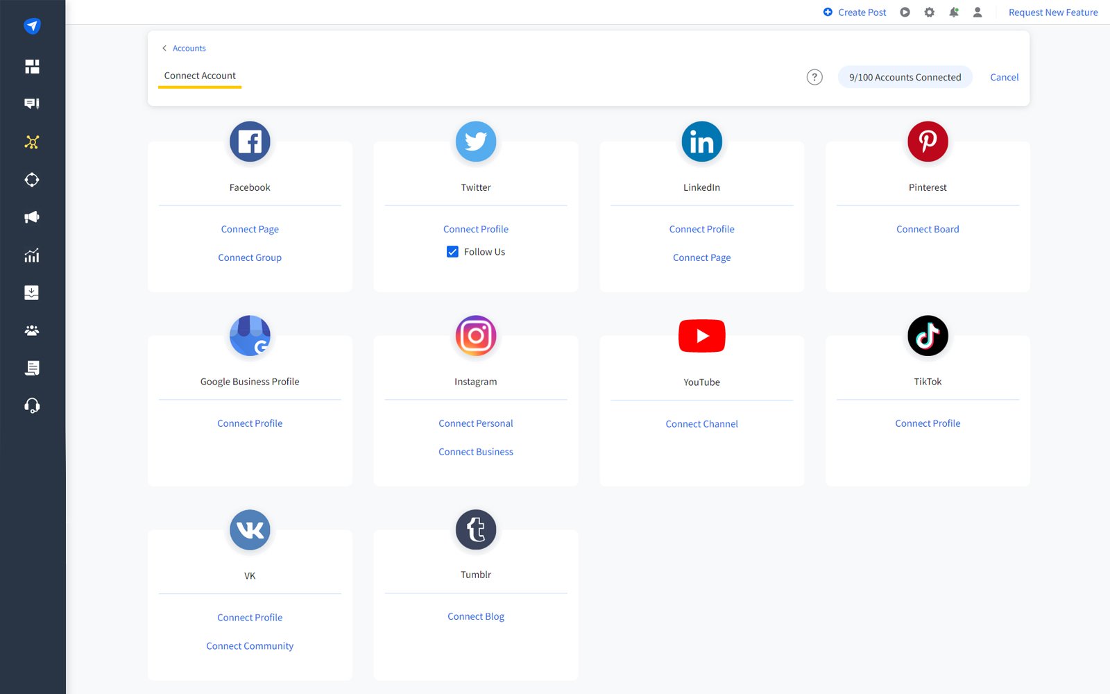 • Gestion multi-plateformes (Facebook, Instagram, Twitter, LinkedIn, etc.)